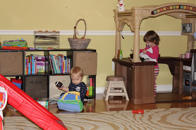 I was trying to be sly & drop hints to Brett about my friend, Ashley's nice new fancy camera her husband bought her. "It takes such clear pictures." "The shutter is super fast." Then, one day a week or so ago Brett says "ask your friend what kind of camera she has. I think I'm going to buy us a new better one." I got a big smile on my face! This wasn't too tough to talk him into since it annoys him when our camera is too slow & doesn't catch the babies doing something. He researched & headed to Best Buy last Friday. He came home with a Cannon Rebel T2I & a new little Nikon point & shoot one. I told him to learn all about it then to teach me. It takes really fast & clear images! I haven't even used it yet. Here are some pics Brett took at home this weekend playing around with it.