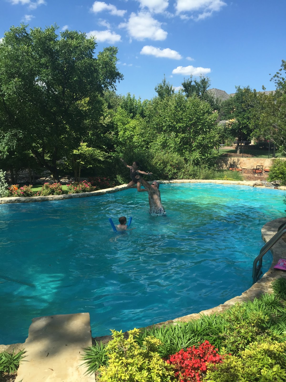 Jackson kicking off summer with a swim with his buddy/neighbor, Cade.